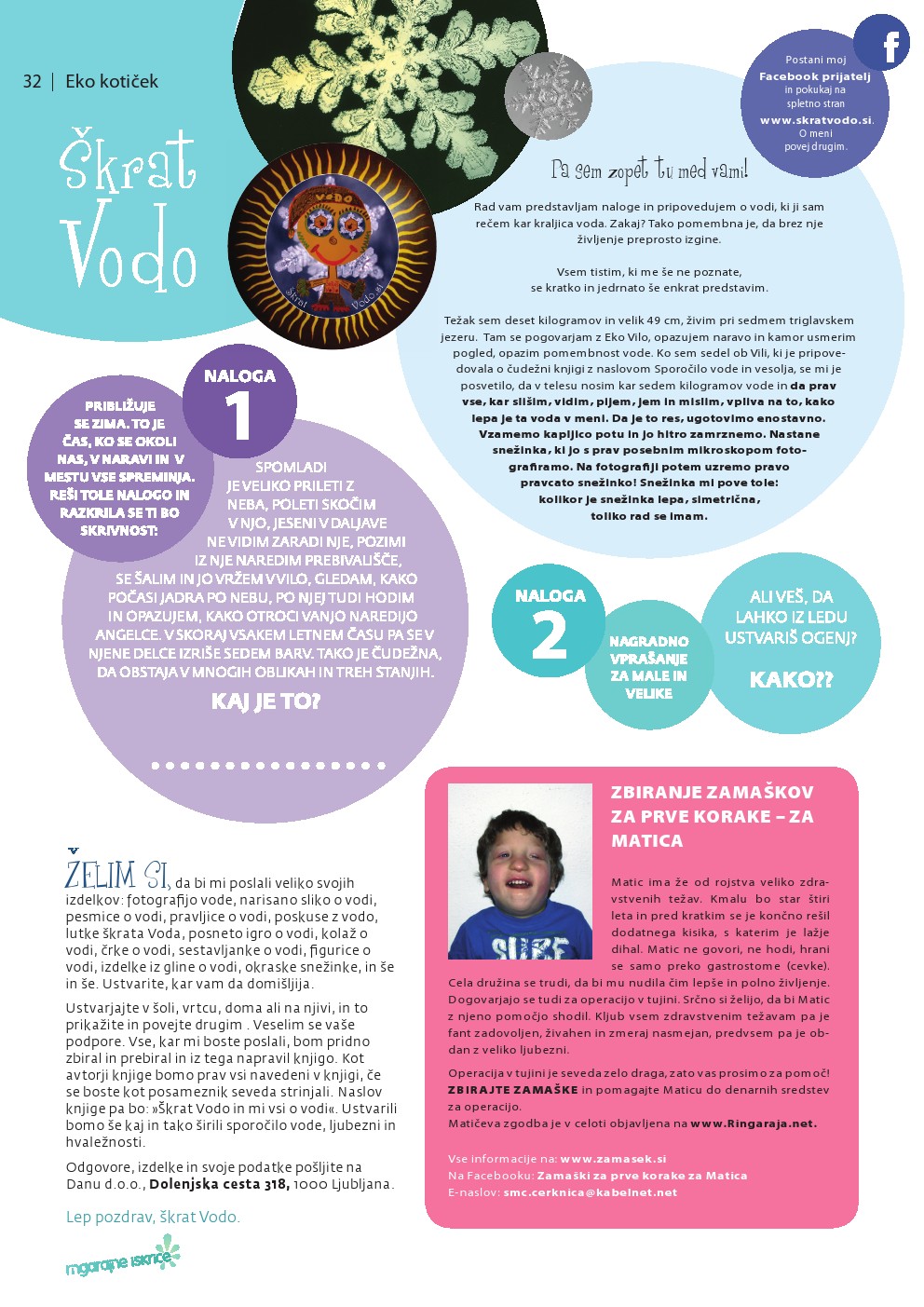 Najdete me tudi v revijah za otroke in odrasle. S pomočjo prijateljev, ki mi pomagajo in pišejo o meni, ter o tem kaj imam za povedati o vodi kot najpomembnejši za življenje, vam v publikacijah razkrivam :